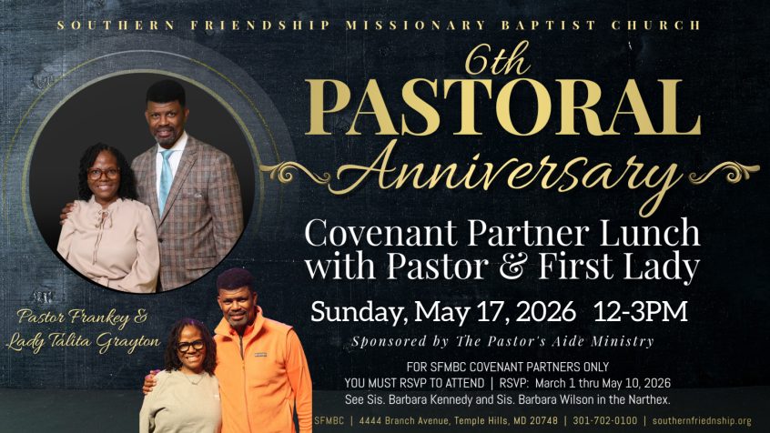 6th Pastoral Anniversary Covenant Partner Lunch with Pastor Frankey & First Lady Talita Grayton | Sunday, May 17 | 12-3PM